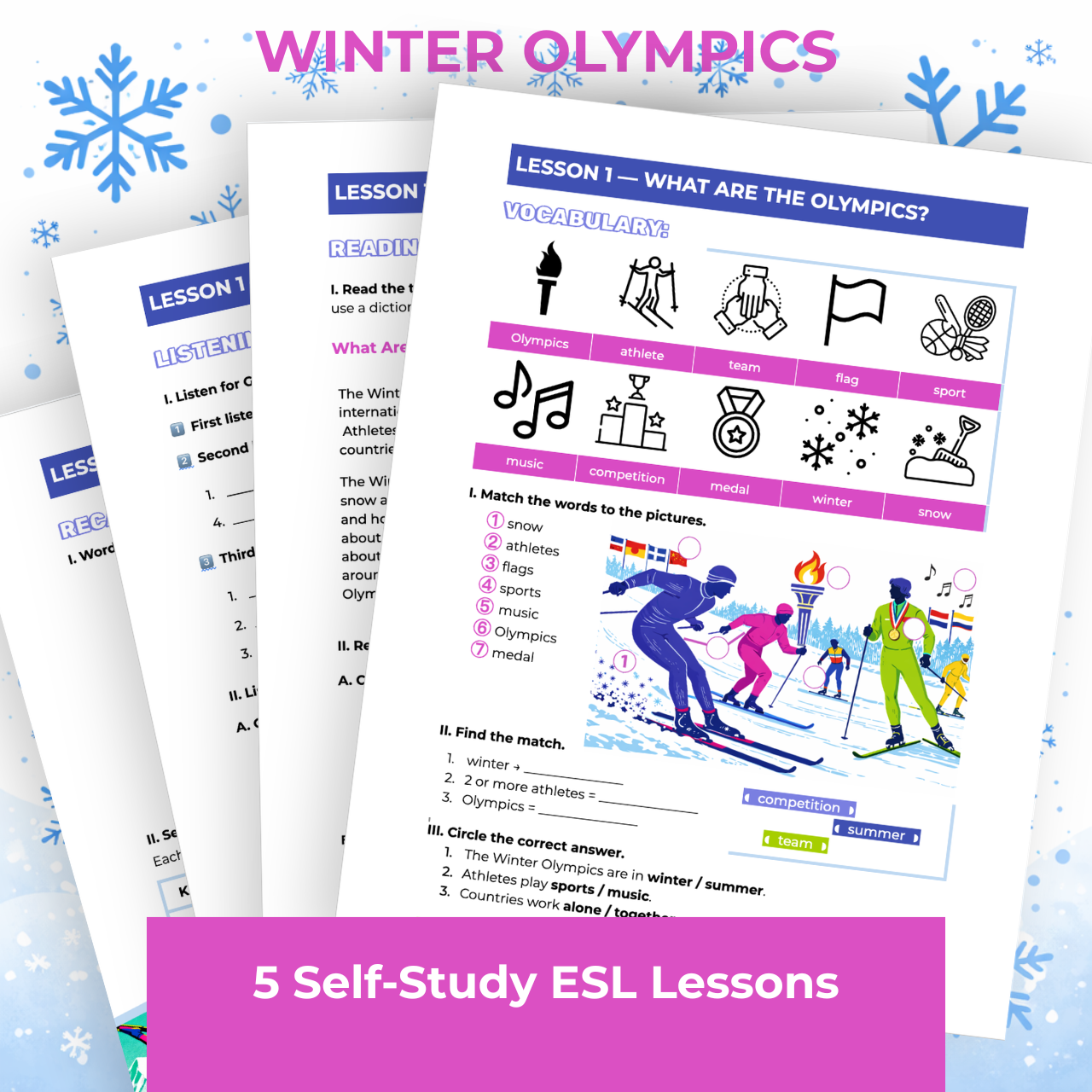 WINTER OLYMPICS—5 Self-Study ESL Lessons (A1+ to A2)